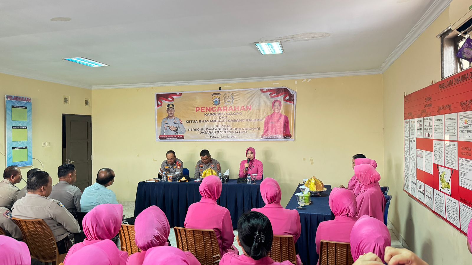 PALOPO INDEKSMEDIA – Ketua Bhayangkari Polres Palopo memberikan pengarahan kepada personil Bhayangkari Polsek Wara dan Polsubsektor Wara Barat pada Rabu, 7 Agustus 2024. Kegiatan tersebut dihadiri oleh Kabag SDM Polres Palopo, Kompol Misbahuddin, Kapolsek Wara, dan Kapolsubsektor Wara Barat.