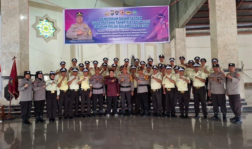 PALOPO INDEKSMEDIA.ID – Pendidikan Dasar Satpam Gada Pratama Tahap XIX Tahun 2024 yang diadakan Jajaran Polda Sul-sel resmi ditutup pada selasa, (08/10/2024).