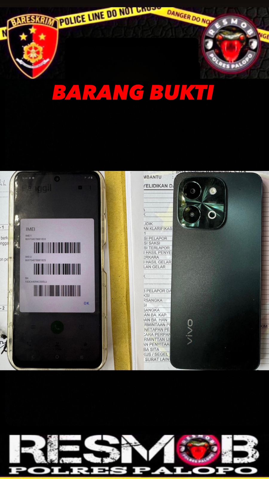 Namun, saat ingin mengambilnya, korban mendapati handphone Vivo Y28 warna Agate Green (Hijau Zamrud) sudah hilang.