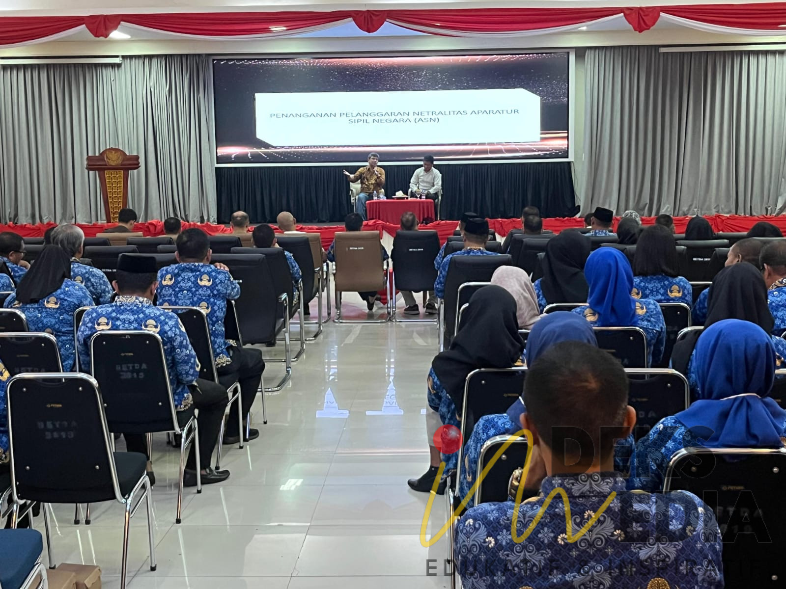 Kegiatan sosialisasi netralitas Aparatur Sipil Negara (ASN) berlangsung dengan minim kehadiran ASN. Sejumlah kursi tampak kosong meskipun acara tersebut menghadirkan narasumber penting dari Bawaslu RI dan Bawaslu Sulsel.