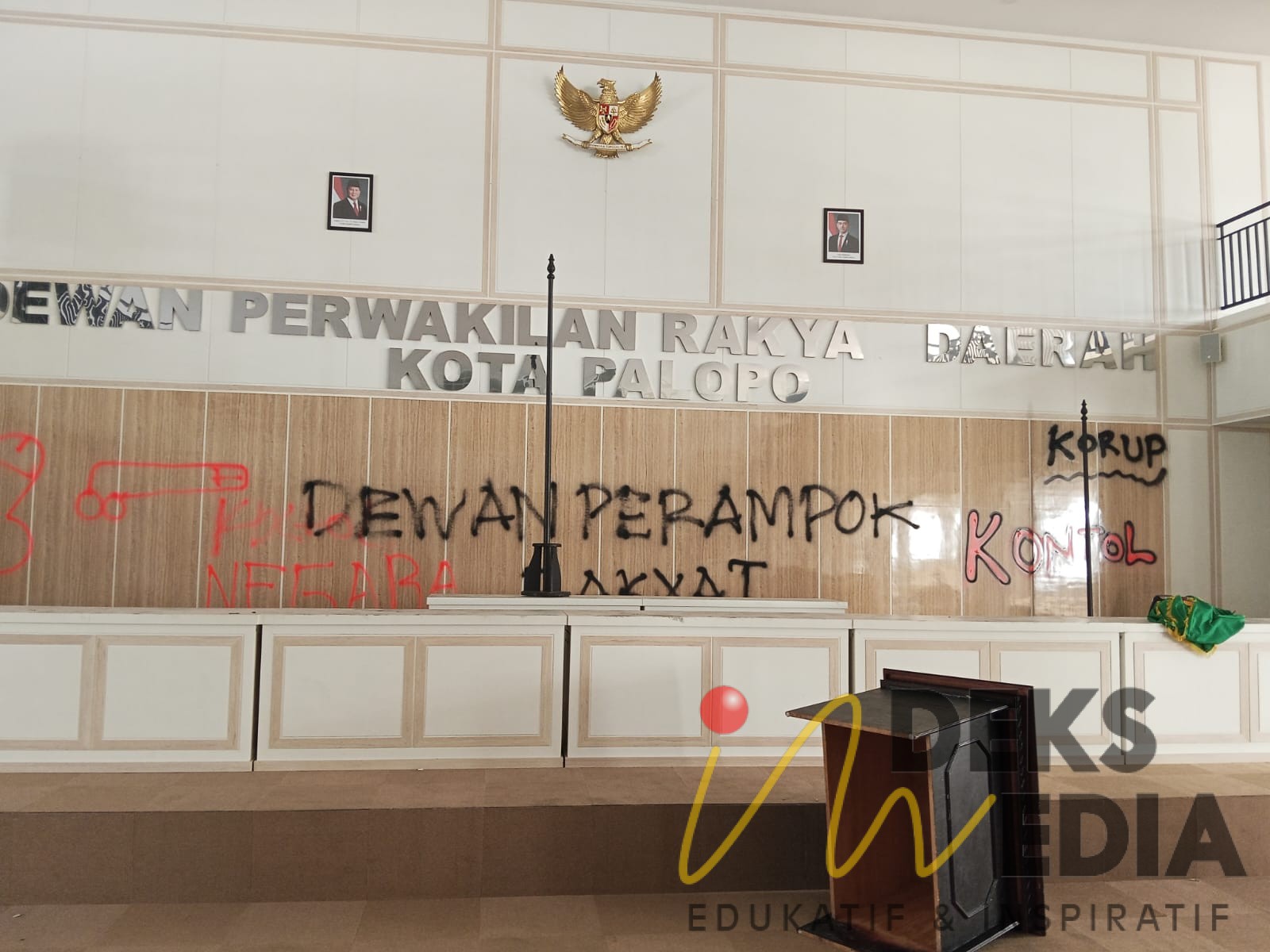 Tidak hanya masuk ke ruang rapat paripurna, tetapi juga melakukan aksi vandalisme. Pintu ruang paripurna dirusak dan dinding dicoret dengan kalimat bernada protes. Selain itu, terlihat sejumlah anak-anak di bawah umur ikut berada di dalam ruangan tersebut.