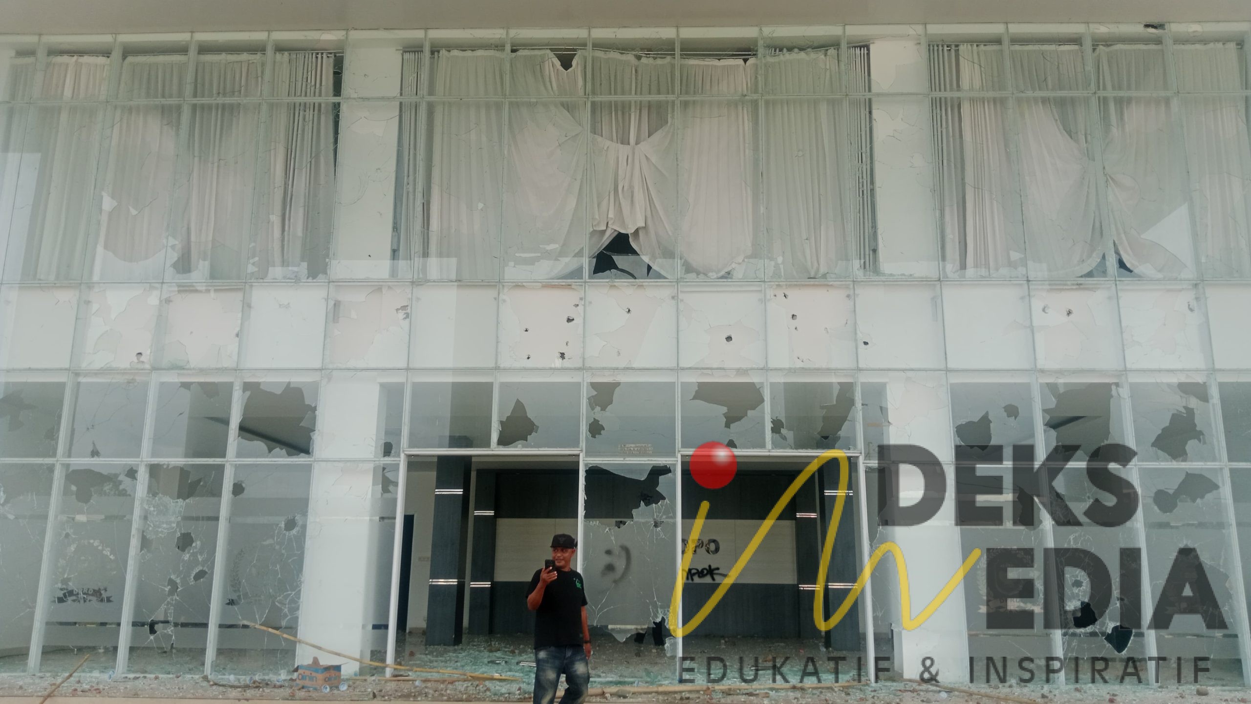 Tiba-tiba datang segerumbul massa mendobrak pagar pintu gerbang hingga masuk dan melakukan pengerusakan terhadap gedung dan fasilitas kantor.