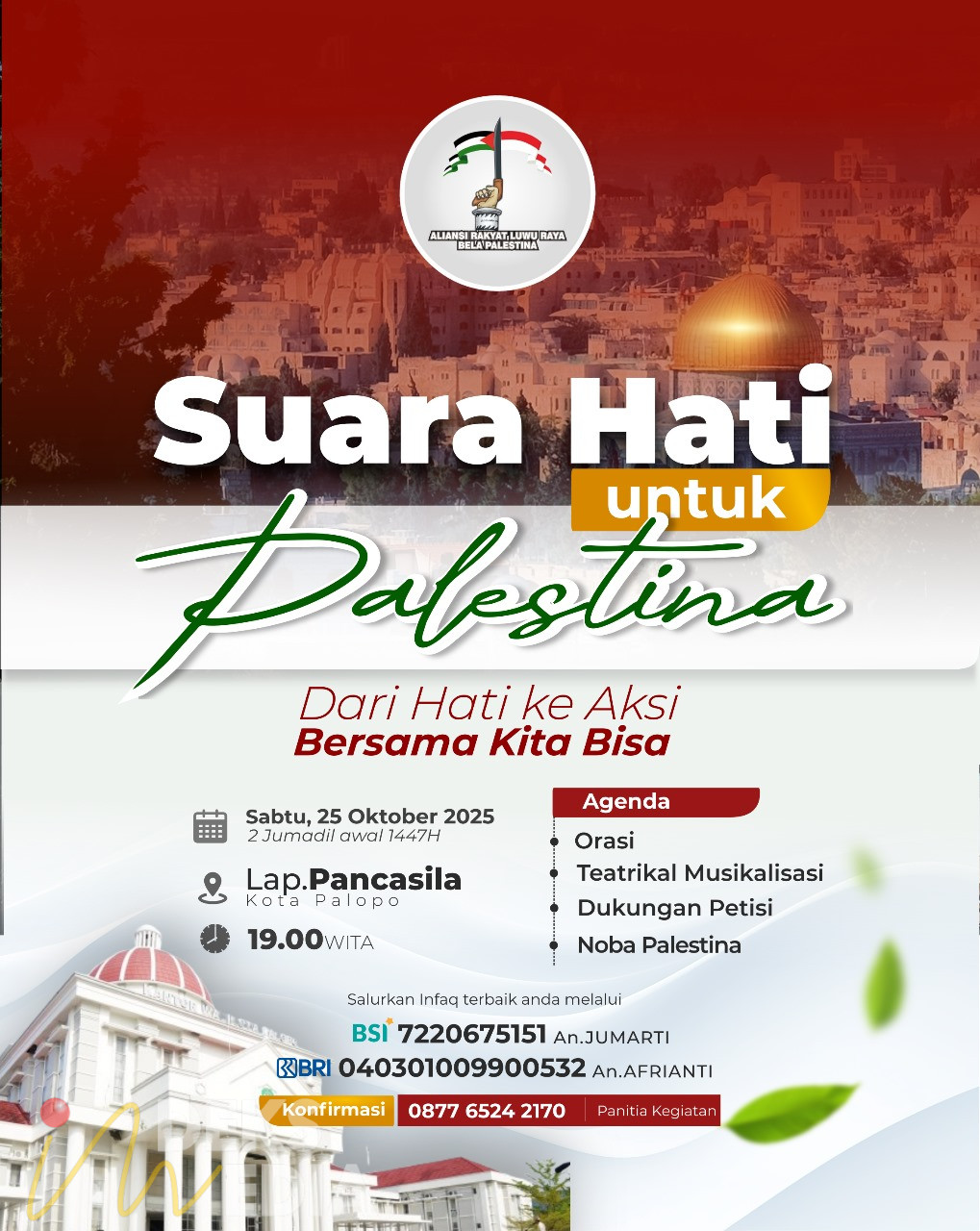 “Kami ingin menunjukkan bahwa hati nurani masyarakat Luwu Raya tidak pernah mati terhadap penderitaan rakyat Palestina. Ini adalah panggilan kemanusiaan yang kami wujudkan lewat aksi damai dan penggalangan dukungan,” katanya.