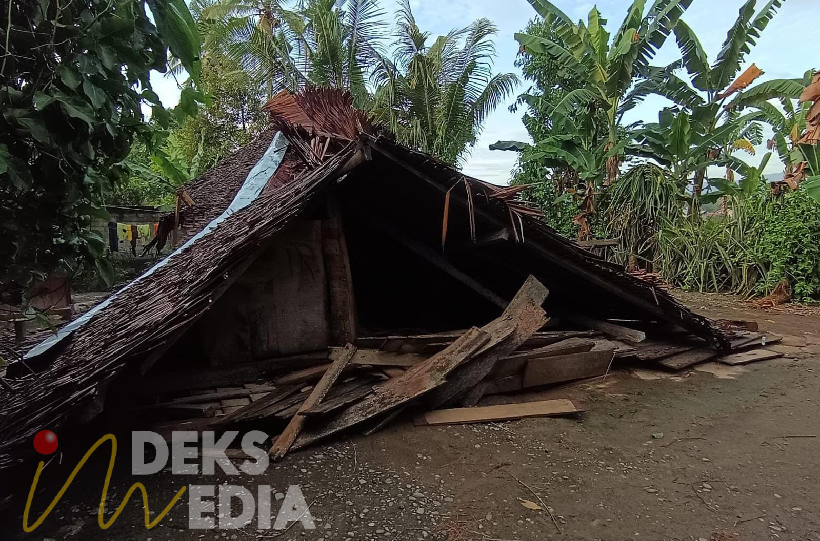 “Setelah mati lampu ada angin dan meniup ke arah rumah ini. Saya lihat itu mulai bunyi-bunyi dan terangkat gitu saya lari keluar terus roboh rumahnya,” lanjutnya.