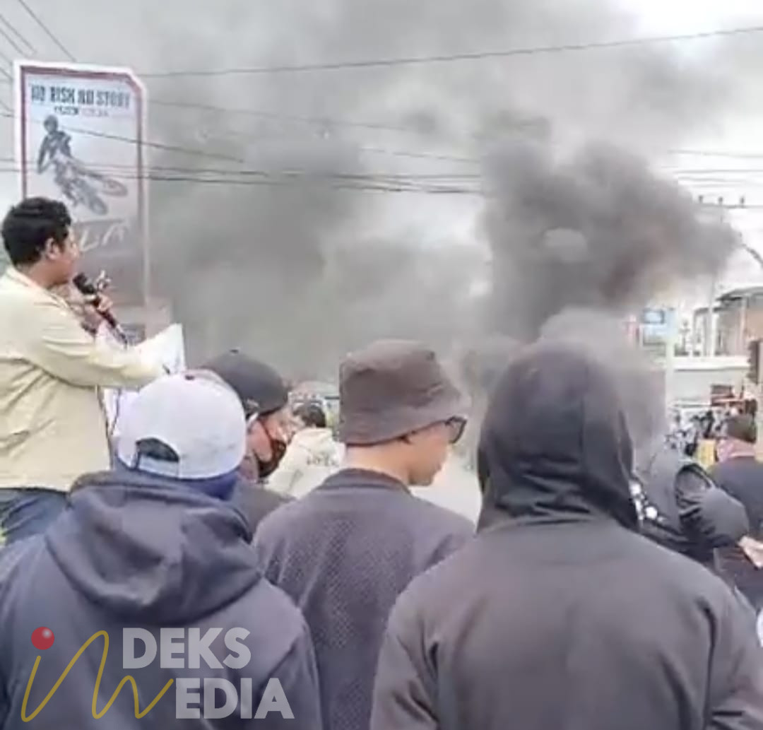 Aksi blokade jalan sempat memanas ketika seorang pengendara mencoba menerobos barisan demonstran. Beruntung, aparat kepolisian dengan sigap berhasil meredam situasi.