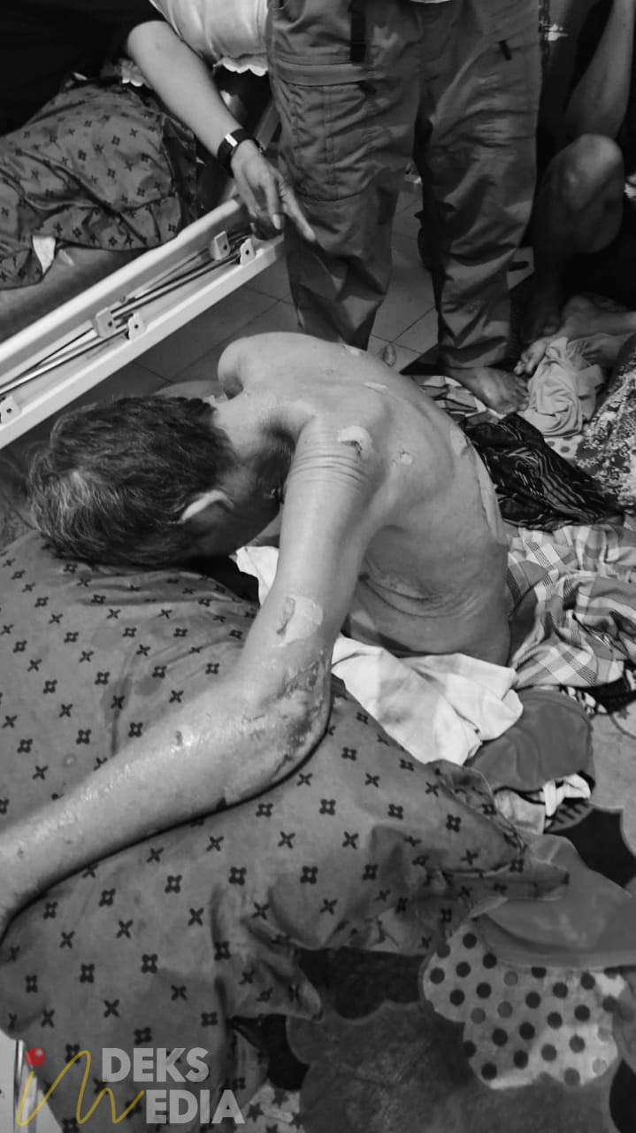 Seluruh organ tubuh Basri, memperlihatkan kondisi buruk, kulit bagian belakang yang tadinya hanya melepuh seperti bola kasti, kini seluruhnya sudah terkelupas bagaikan ular ganti kulit.