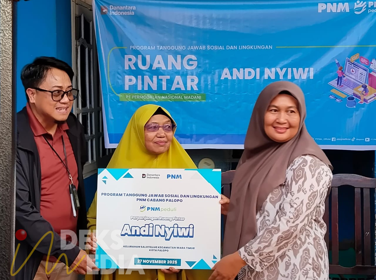 PALOPO,INDEKSMEDIA.ID – PT. Permodalan Nasional Madani (PNM) Cabang Palopo, menggelar program tanggung jawab sosial dan lingkungan (TJSL) dengan menyalurkan bantuan untuk Ruang Pintar Andi Nyiwi di Jalan Andi Nyiwi, Kelurahan Salotellue, Kecamatan Wara Timur, Palopo, Jumat sore (28/11/2025).