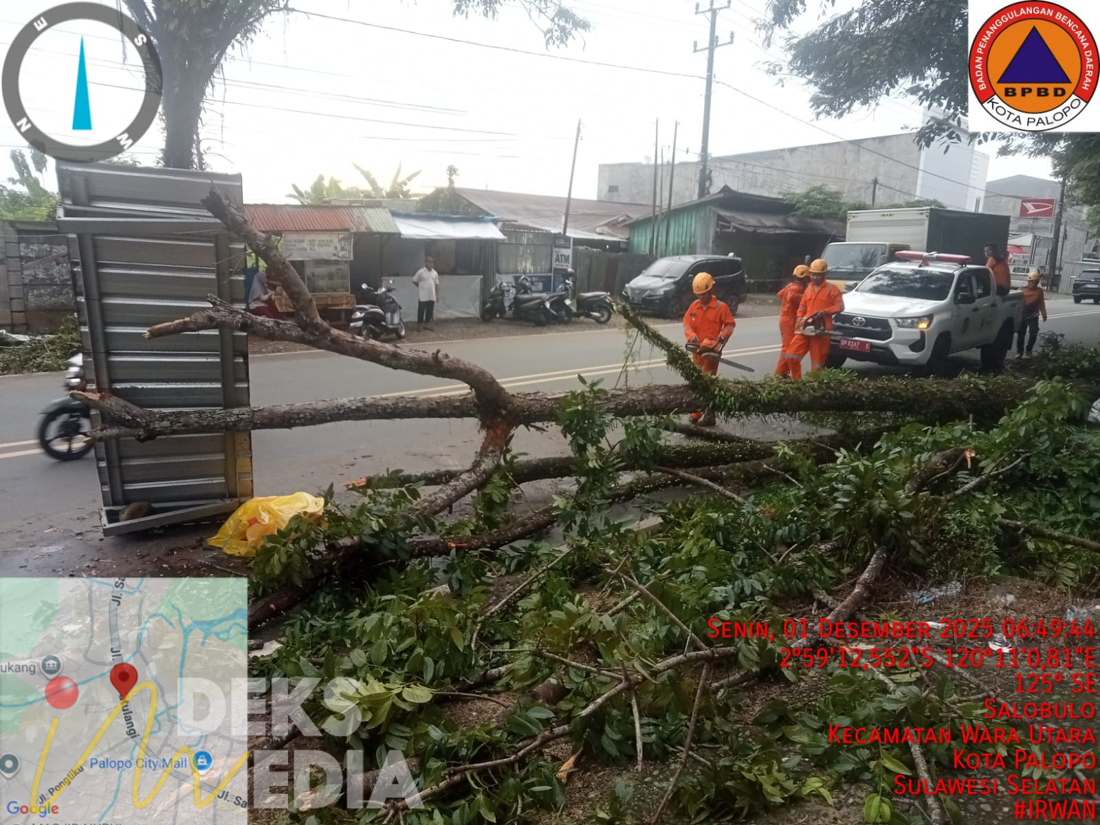 PALOPO, INDEKSMEDIA.ID – Hujan deras yang mengguyur Kota Palopo menyebabkan sejumlah pohon tumbang dan genangan air di beberapa titik. BPBD Kota Palopo turun melakukan penanganan darurat sejak laporan pertama masuk dari warga.
