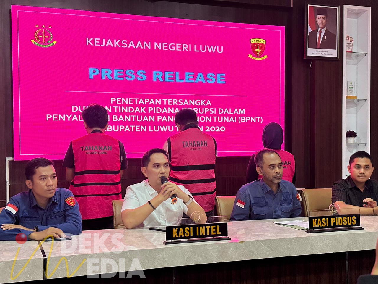 Kejaksaan Negeri (Kejari) Luwu resmi menetapkan tiga orang sebagai tersangka dalam perkara dugaan tindak pidana korupsi penyaluran Bantuan Pangan Non Tunai (BPNT) Kabupaten Luwu Tahun 2020.