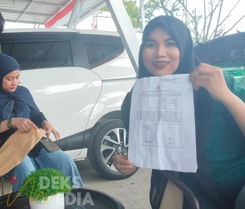Atriana menceritakan apa yang dialaminya saat mendatangi Kantor Redaksi Indeks Media di Jalan Andi Kambo Palopo, Sabtu (27/12/2025).