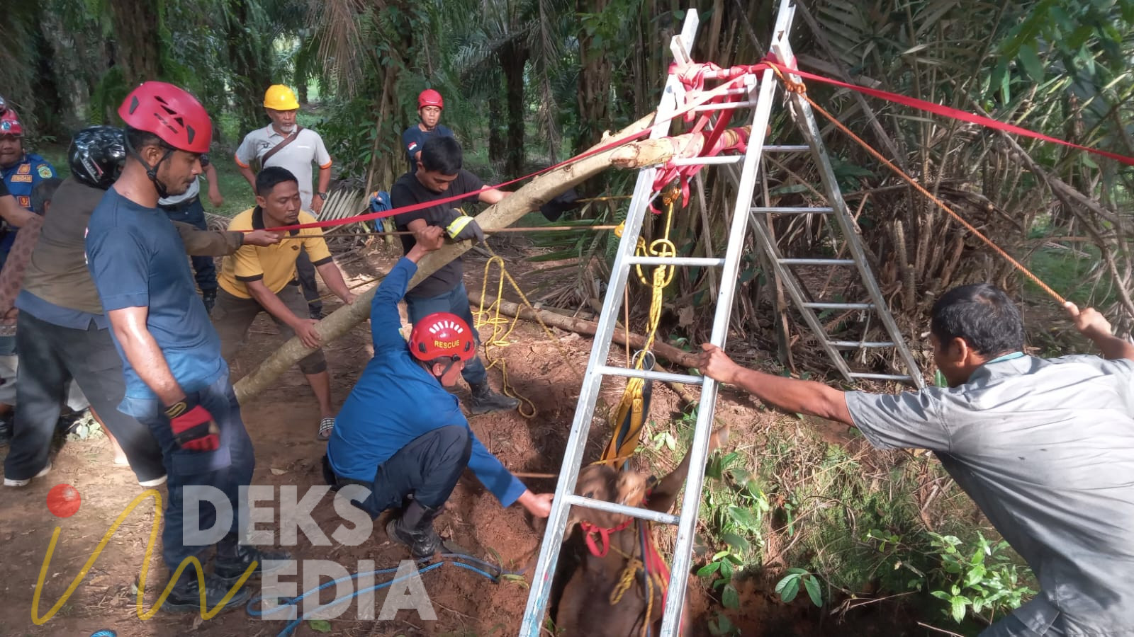 PALOPO, INDEKSMEDIA. ID – Aksi heroik ditunjukkan damkar Kabupaten Luwu Timur (Lutim), dengan mengangkat seekor sapi dewasa yang tergelincir ke dalam sumur sedalaman 30 meter.