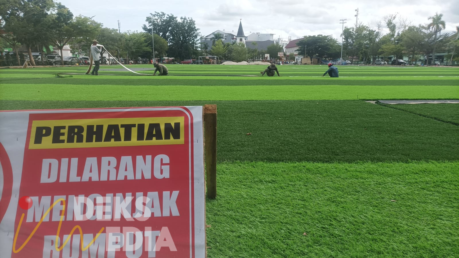 Menurutnya, lapangan dikerjakan oleh tenaga profesional yang langsung didatangkan dari Jakarta.