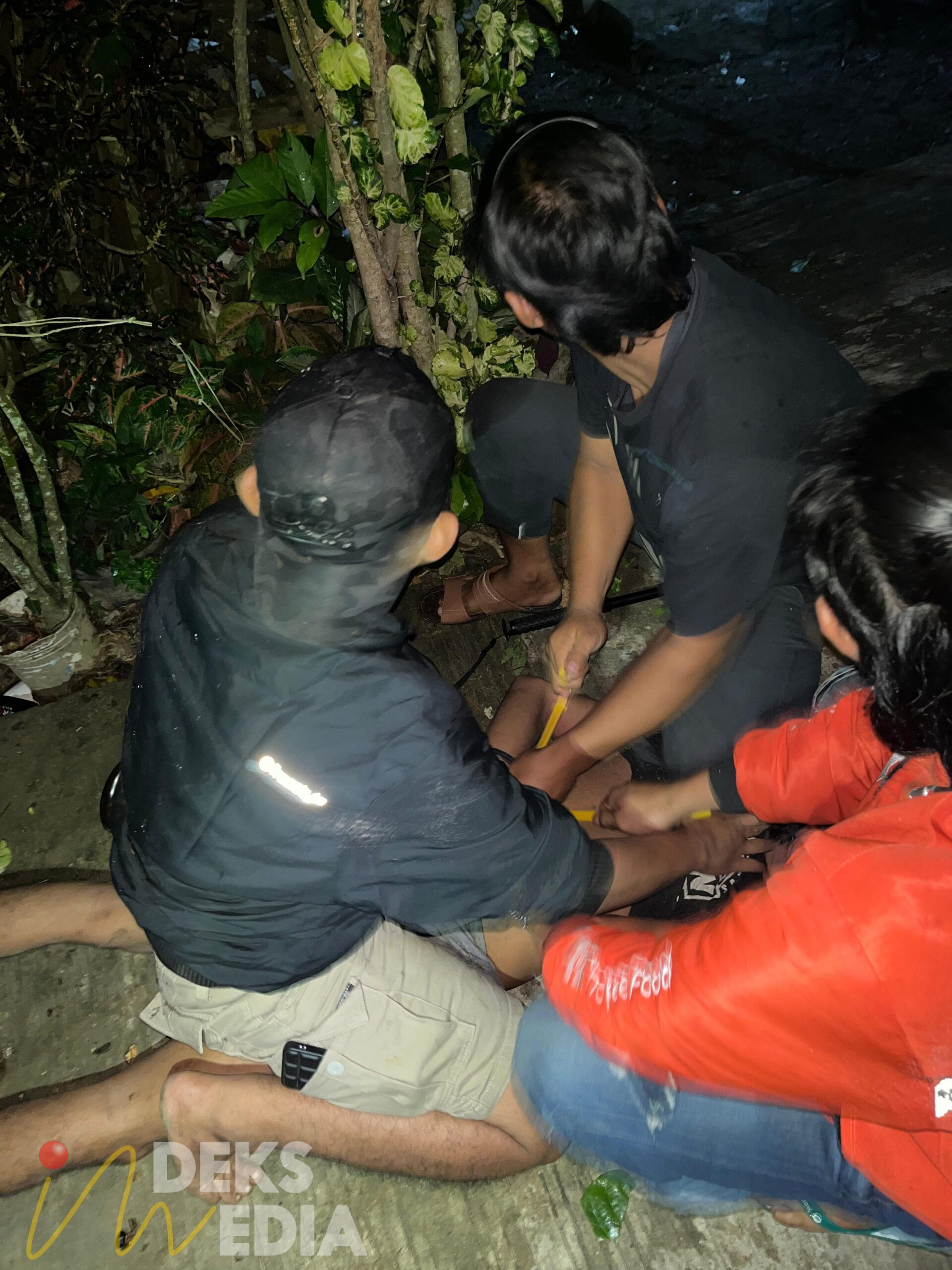 Proses penangkapan pelaku yang hendak kabur.