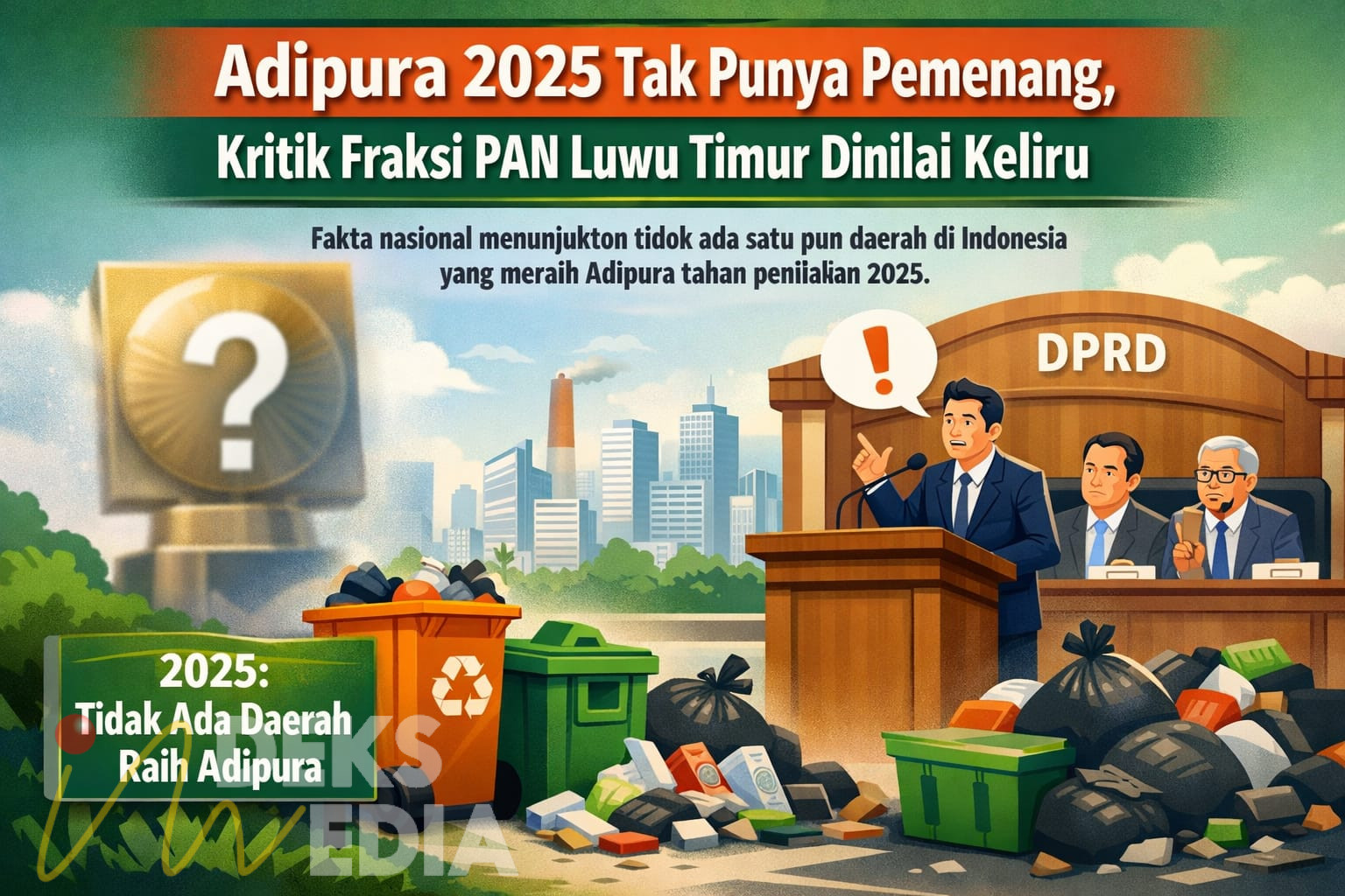 LUTIM, INDEKSMEDIA.ID – Pernyataan Fraksi Partai Amanat Nasional (PAN) di DPRD Kabupaten Luwu Timur yang menyoroti pemerintah daerah karena tidak meraih Piala Adipura 2025 disinyalir asal bunyi. Sebab fakta nasional menunjukkan tidak ada satu pun daerah di Indonesia yang menerima penghargaan Adipura pada tahun penilaian 2025.